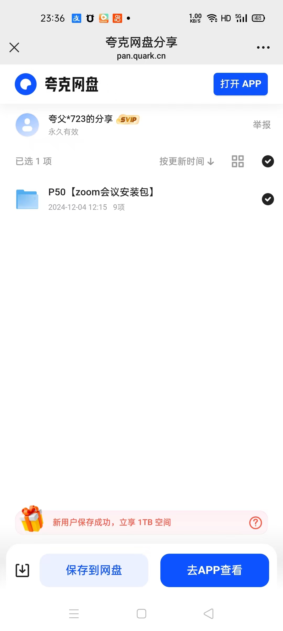 新用户一定要保存资料到网盘,不然不送1TB空间,